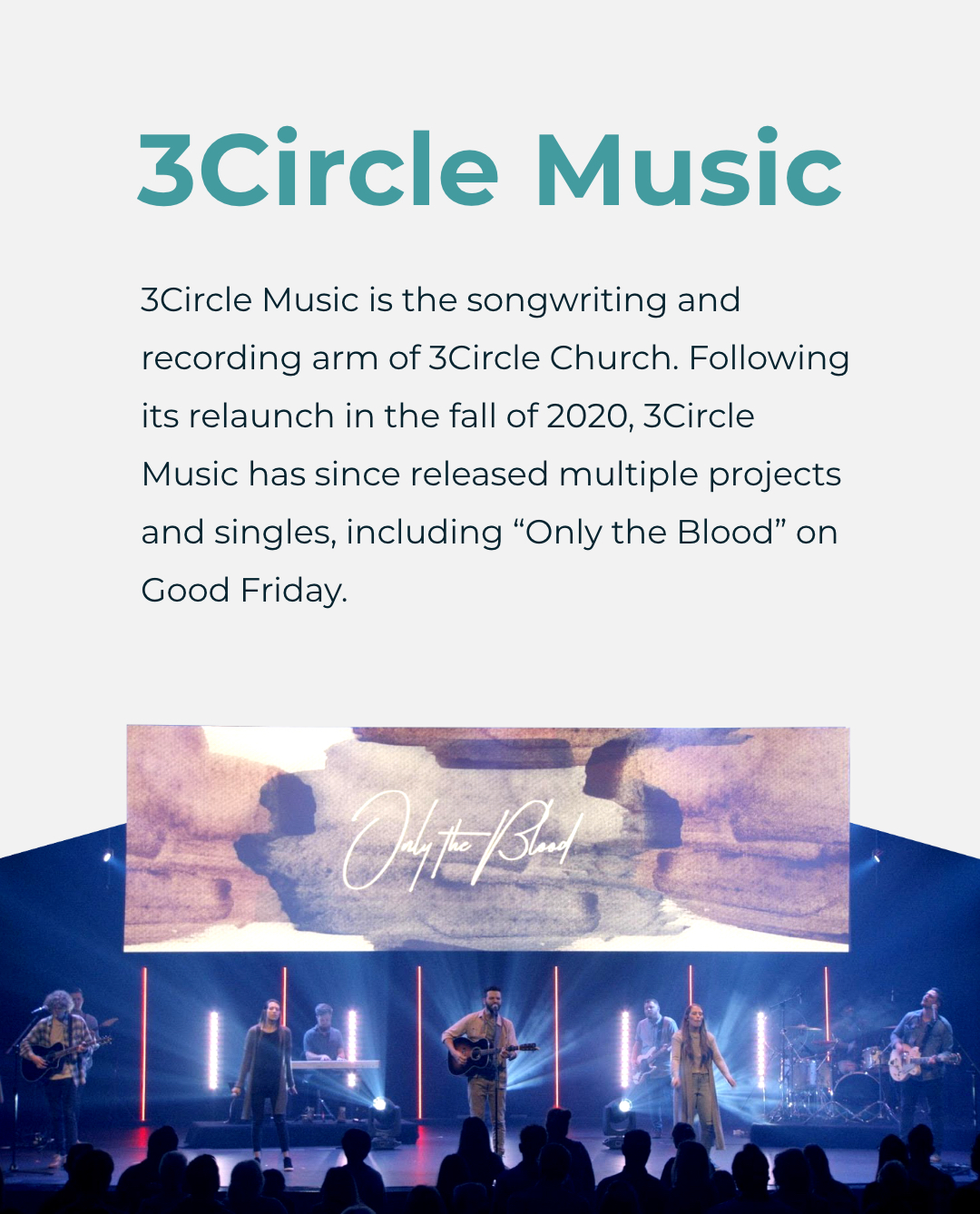 3Circle Music is the songwriting and recording arm of 3Circle Church. Following its relaunch in the fall of 2020, 3Circle Music has since released multiple projects and singles, including “Only the Blood” on Good Friday.